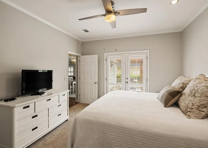The Villas At Gascoigne - 117 Gascoigne Ave, #305 is situated at a 4.4 km distance from St. Simons Island in St. Simons Island and offers accommodation with an equipped kitchen. The 3-bedroom villa is fitted with 2 bathrooms with a tub and a separate toilet.